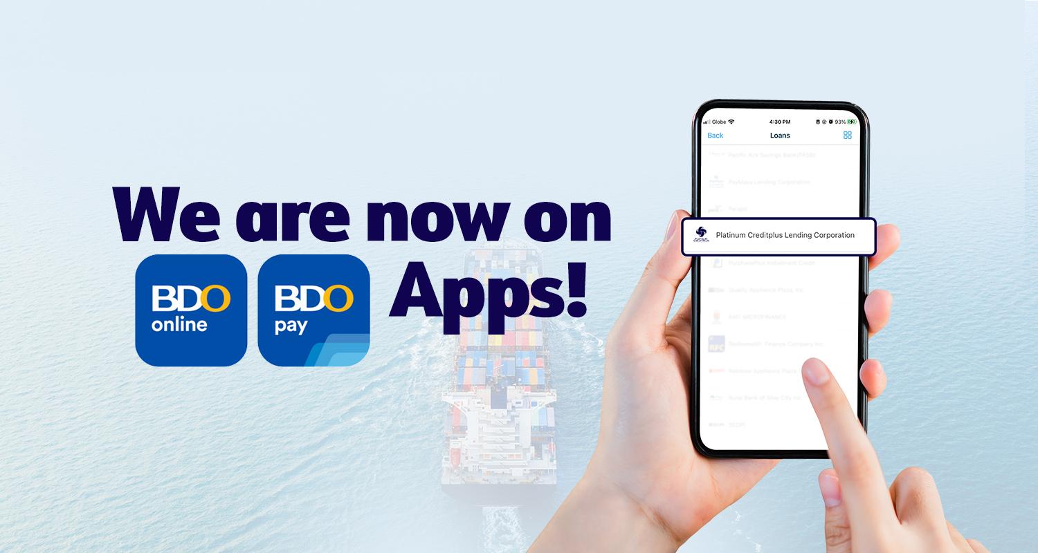 Platinum Creditplus Lending Corp. is now listed as an official Biller on the BDO Online and BDO Pay apps.